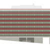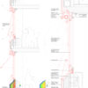 La toile, ondulant par bandes horizontales, unifie l’ensemble de la façade. En contrecœur, elle est simplement tendue entre le garde-corps et le caisson de store, et permet la vue vers la rue. La même toile est utilisée pour les stores, dont la position varie pour chaque façade en fonction des saisons et des heures de la journée. Elle produit des jeux de transparences, qui varient par l’alternance des bandes colorées en deuxième plan et par l’incidence de la lumière solaire.