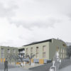 La cour d’accès est le lieu privilégié d’échange avec la ville et la population. Les espaces communs sont organisés autour de cet espace et y trouvent leurs prolongements extérieurs.