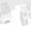Par sa forme et son assise dans le terrain, le bâtiment génère des espaces extérieurs en relation directe avec els différents niveaux: la cour d’entrée et les séjours communs, le jardin et l’unité de gériatrie, les livraisons et l’esplanade de l’hôpital.