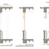 Les circulations verticales existantes ont été préservées, ce qui définit au préalable les différentes profondeurs des locaux / ateliers d’enseignements et leurs orientations. Leur cloisonnement est adapté au rythme principal de la structure porteuse et compose avec les ouvertures zénithales existantes.