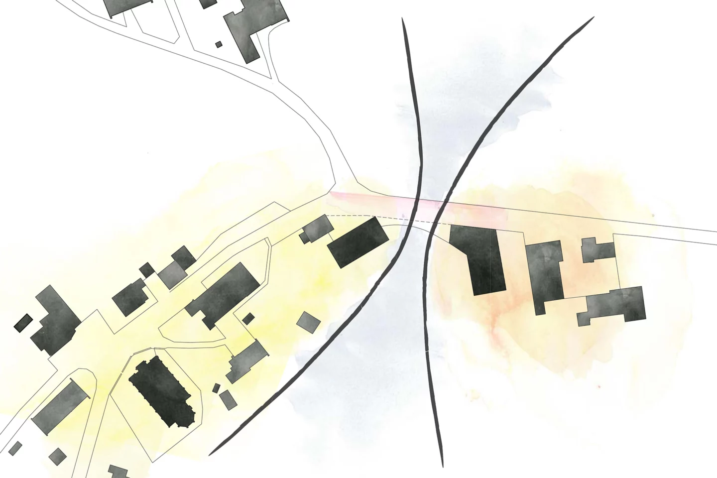La laiterie est reliée au village par un nouvel espace public créé sur le « pont ».