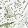 La nouvelle école forme une entité avec le parc auquel elle donne un rôle urbain: il va à la rencontre des habitants et de la ville et répond au front de rue. le parcours est redéfini: depuis la cour d’entrée, le visiteur longe un jardin communautaire et pédagogique aboutissant au préau de l’école. Le promeneur peut ensuite rejoindre la rue des Berges et continuer sa balade le long de la Broye.