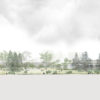 La volumétrie émergeante est amoindrie grâce à la réutilisation d’une partie des déblais pour la mise en forme du terrain. L’articulation des volumes contribue également à en réduire l’impact visuel pour le public.