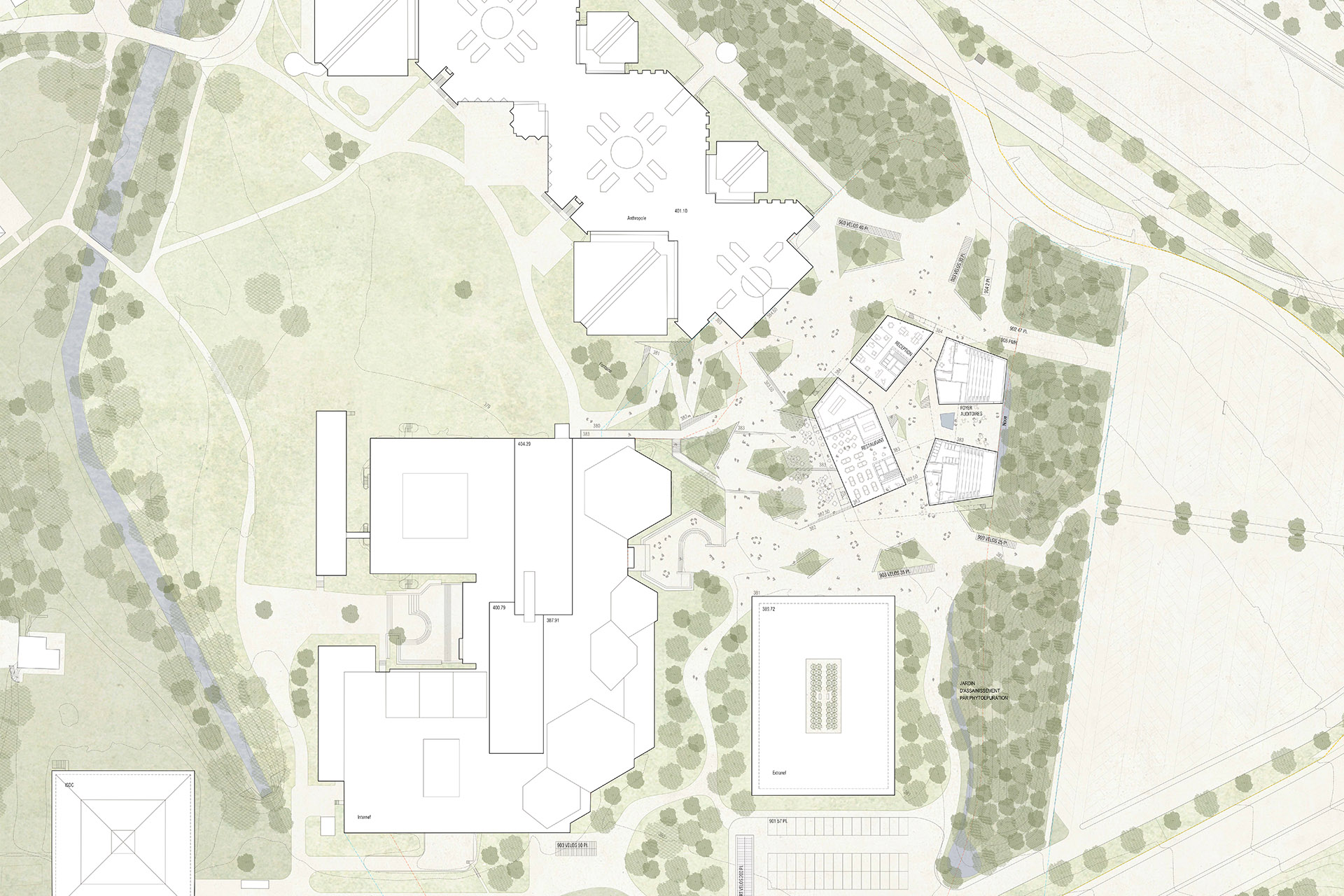 Le campus de l’Unil se caractérise par des constructions indépendantes au sein d’un grand parc. Notre intervention suit cette dis-contiguïté, tout en recherchant un dialogue de proximité avec l’Anthropole, l’Internet et l’Extranef et introduit de ce fait un caractère plus urbain.