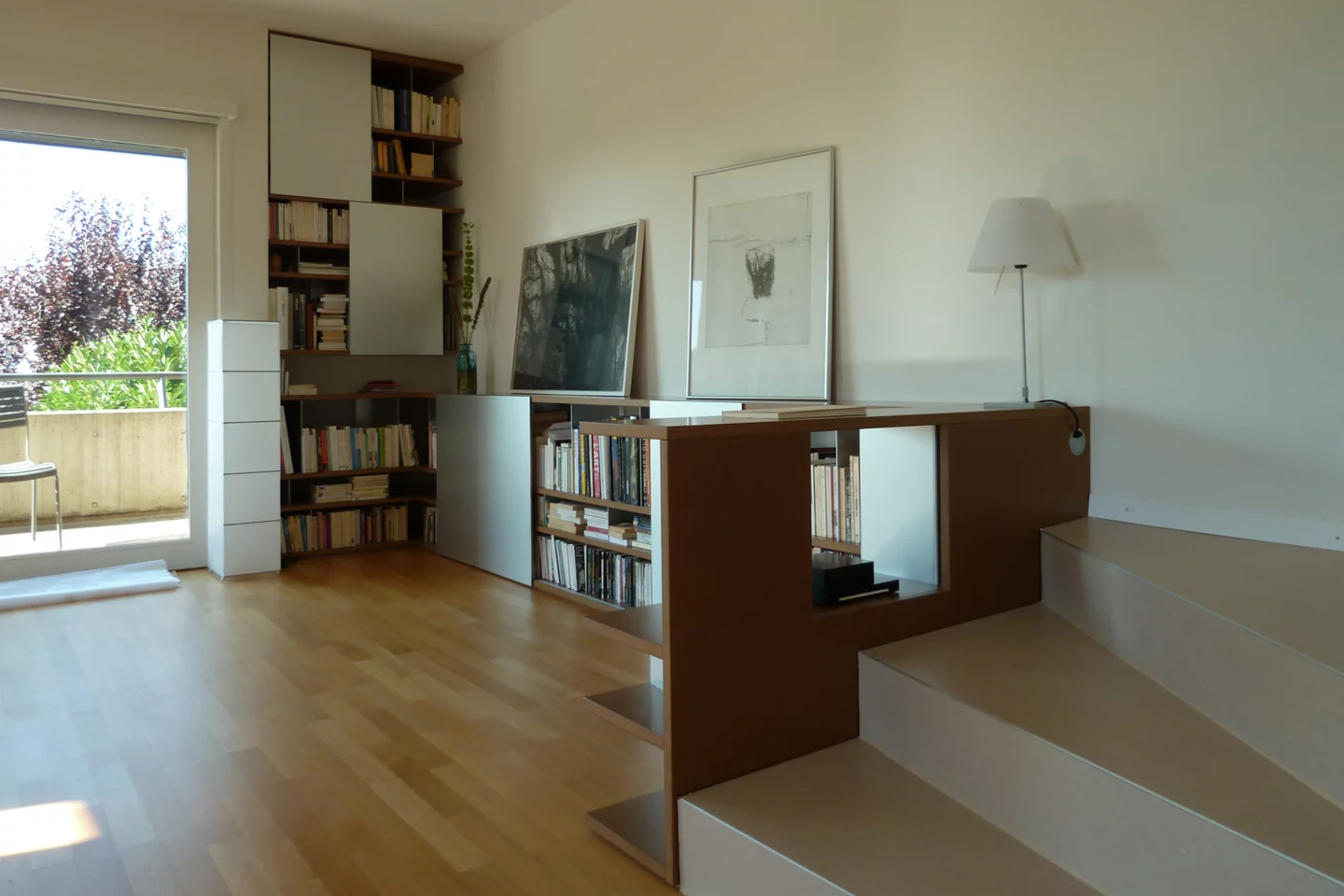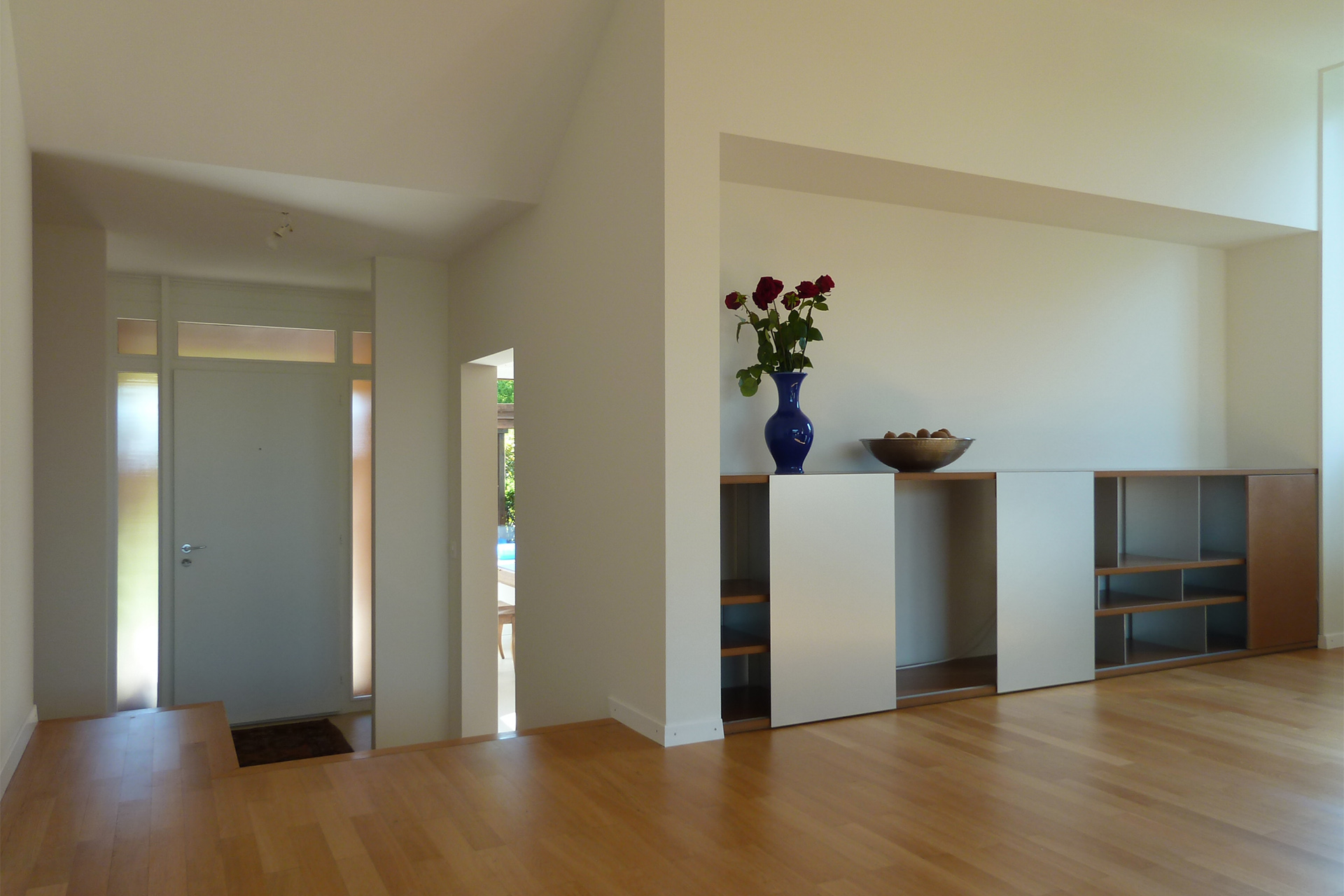 Cohérence et harmonie dans la conceptualisation et la réalisation des meubles du salon et de la cuisine.